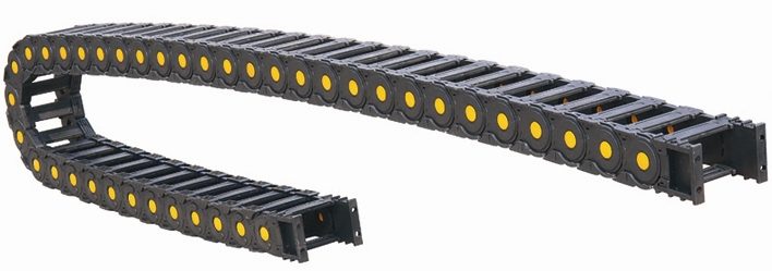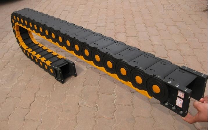 工程塑料拖鏈可承載數(shù)量多,重量大的電纜及油管,自由懸置(允許不用支承輪)長度大,支撐板可依照客戶需要制作,適用于所有移動(dòng)機(jī)械等,其彎曲半徑為75-650mm,鏈板高度為40-145mm,可任意選用,工程塑料拖鏈常見指標(biāo)有:
