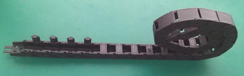 工程拖鏈,它適用于數控機床、加工中心、自動化機械及生產線等各類機床、機器人、運輸機械、測量儀器、搬運裝置以及其它驅動控制作為電線、電纜液、氣軟管的防護裝置,能隨機床、機械設備移動部件協調地運行,可發揮安全保護和導向的能力,可延長被保護的電線、電纜、液、氣軟管的使用壽命,降低消耗,可大大改善機床、機械設備的電線、電纜、液、氣軟管分布零亂的狀況,使之整齊、規則地排列在一起,能增強機床、機械設備的整體藝術造型效果。